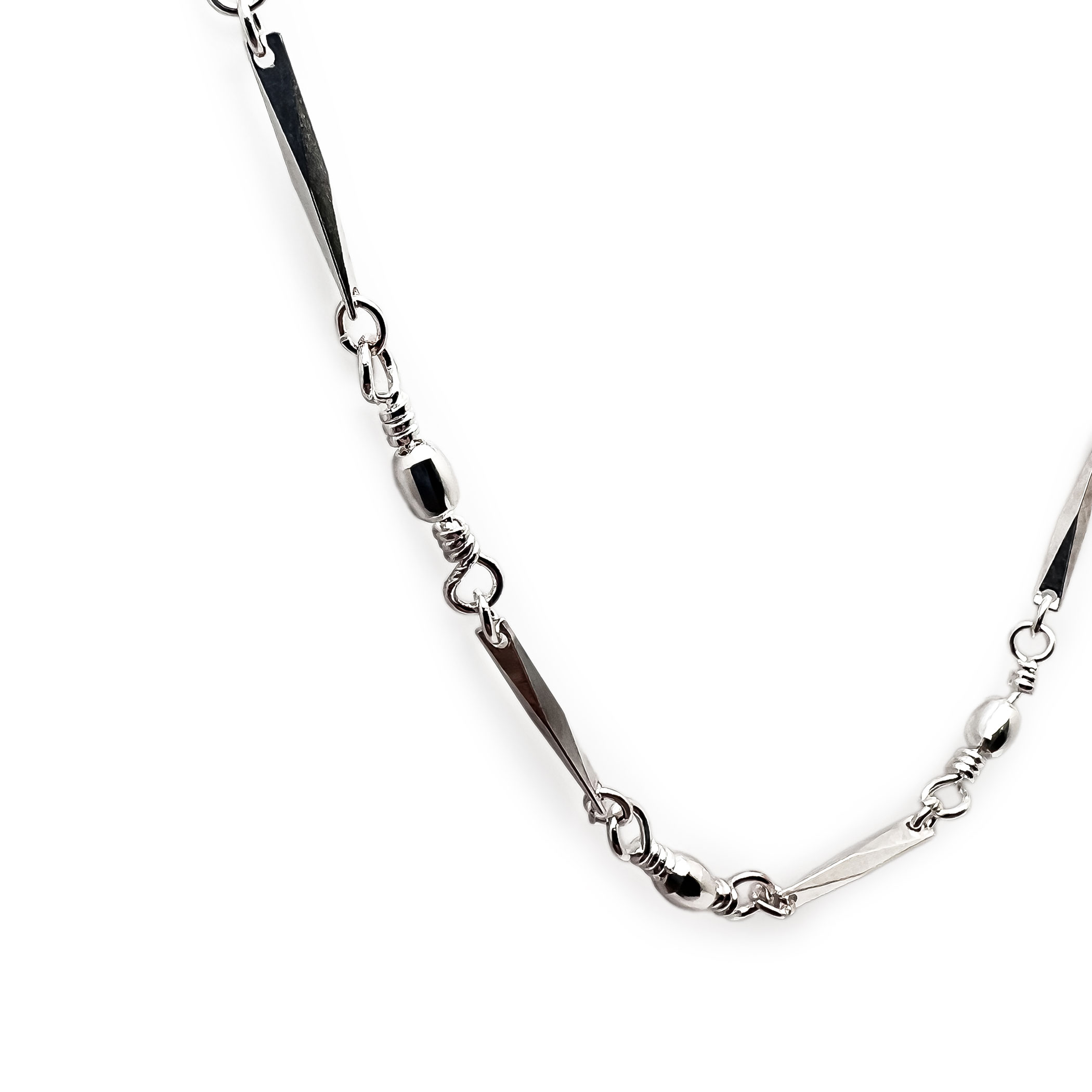 Lightweight and precisely balanced, it is designed as an everyday sterling silver necklace suitable for all genders.