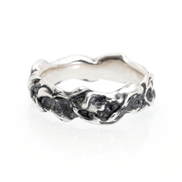 The darkened silver finish adds depth and drama, highlighting every line and texture, making each ring a truly one-of-a-kind piece – a wearable reminder of the power and beauty of the natural world. Perfect for those who appreciate bold, nature-inspired jewelry with a raw, organic feel.